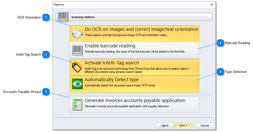 This enables the Automatic Type Detection feature. Based on the document layout, ChronoScan will try to fit the scanned documents on one of the document types on it's database.