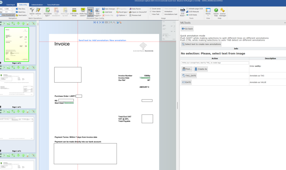 If we click this button the grid below will be populated with e-tags suggestions for helping us annotating the document from ChronoScan fed data. For this, we have to had processed the document/batch with the "Auto e-tags reading" processing option enabled and configured.