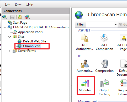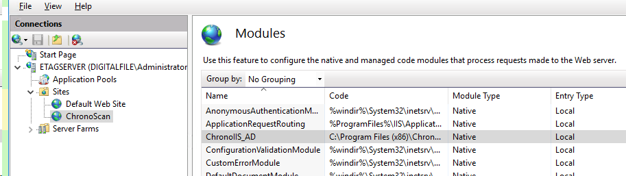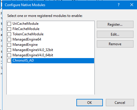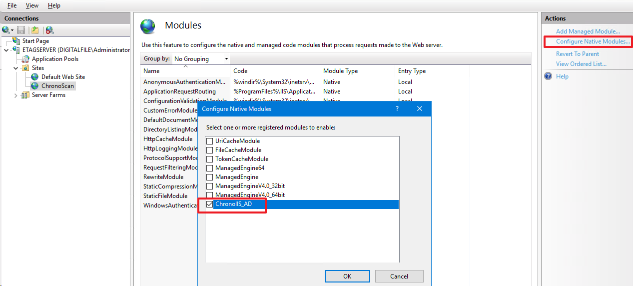 Click on Configure Native Modules and enable the existing ChronoIIS_AD module
