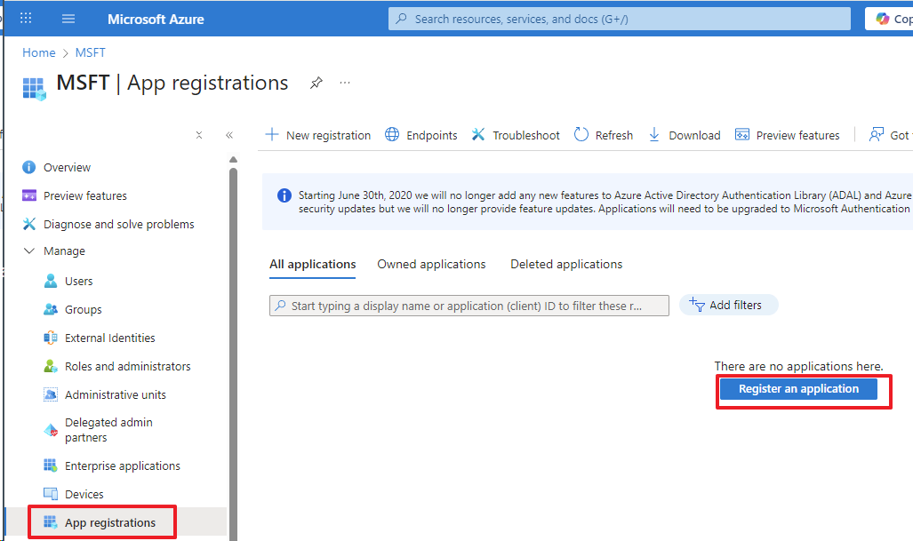 To configure a new Entra ID app registration go to AZURE Entra ID configuration - App Registration and register new application