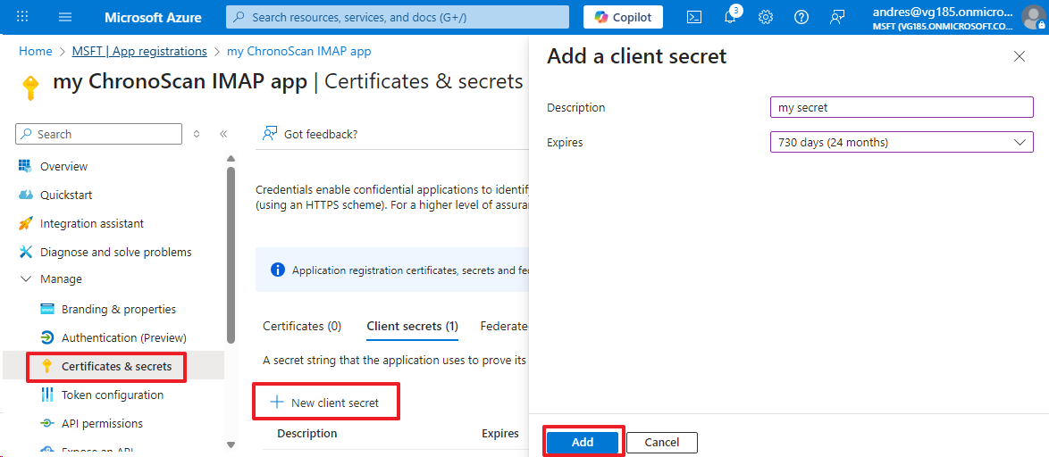 Now it is necessary to create a client secret