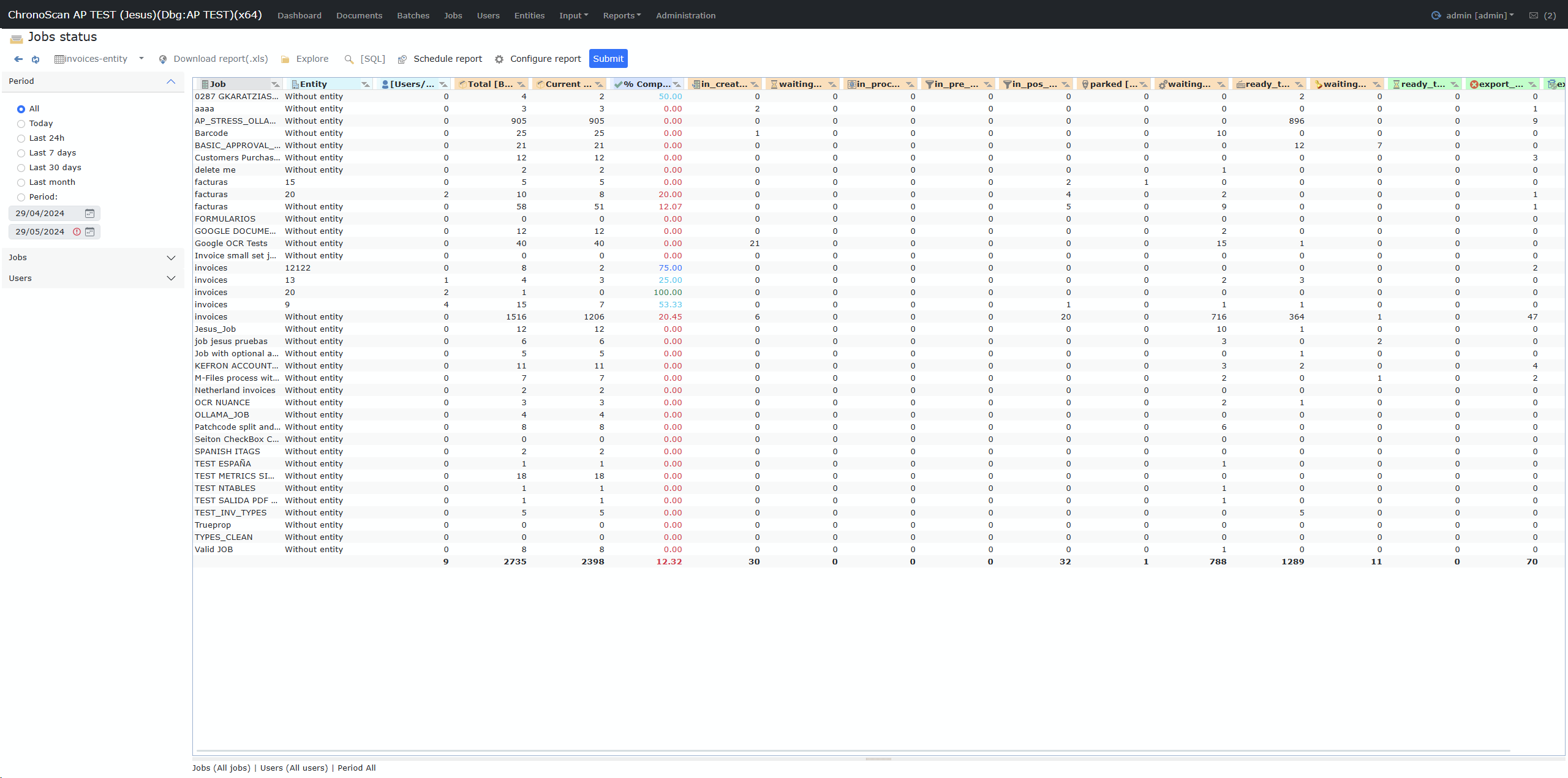 Documents currently present (not deleted) for the job/entity and within the selected period.