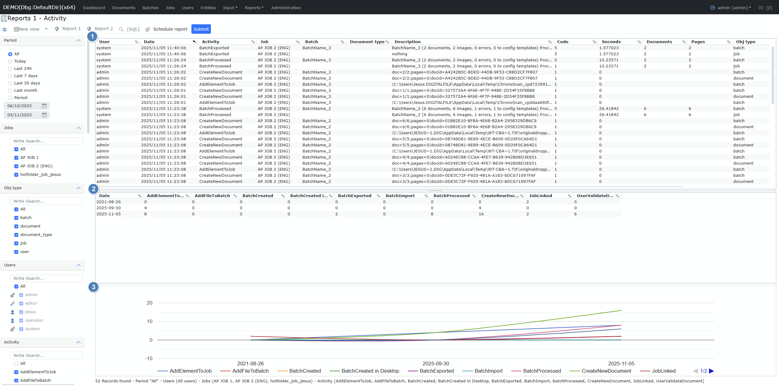 Downloads the result of Report 1, usually in a standard data format (XLS) for further analysis or sharing.