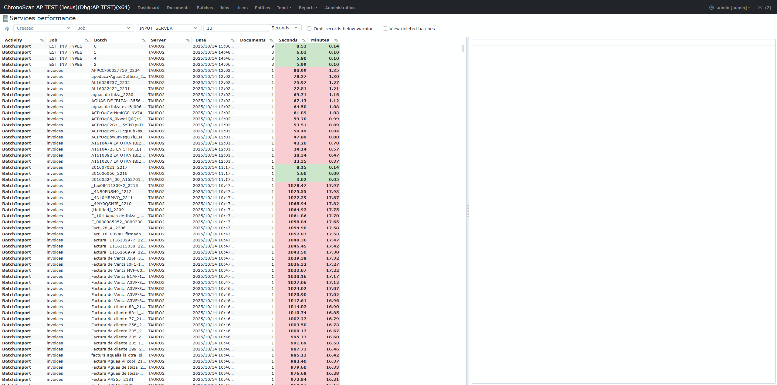 Total time taken for the task, in seconds. Color-coded if above/below the warning threshold