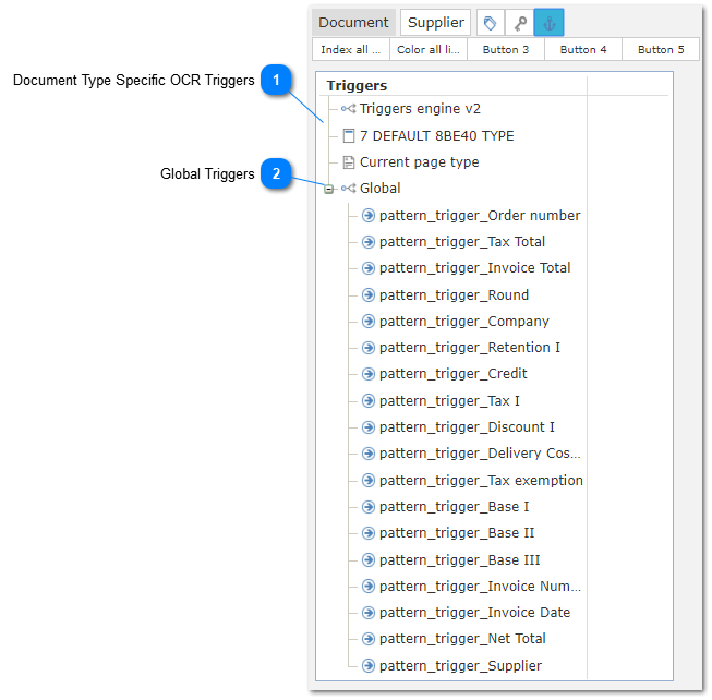 On the triggers panel it is possible to see and edit all global and document type specific triggers.